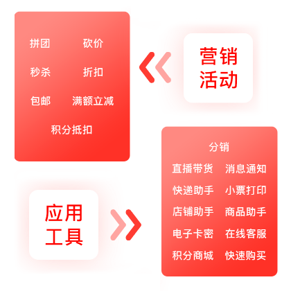 · 子商户可独立设置营销活动,并支持使用多种应用工具,满足不同营销应用场景。