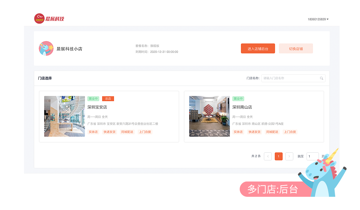 1.授权门店运营权限后,门店管理员可运营对应门店