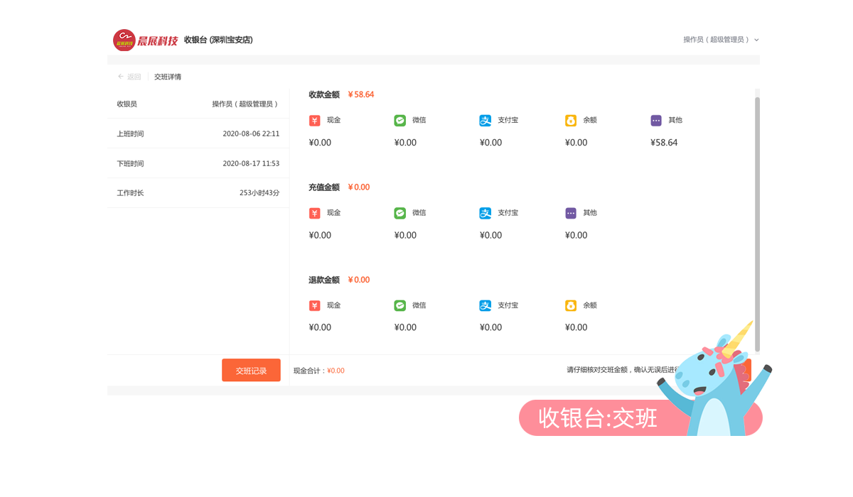 收银交班、统计