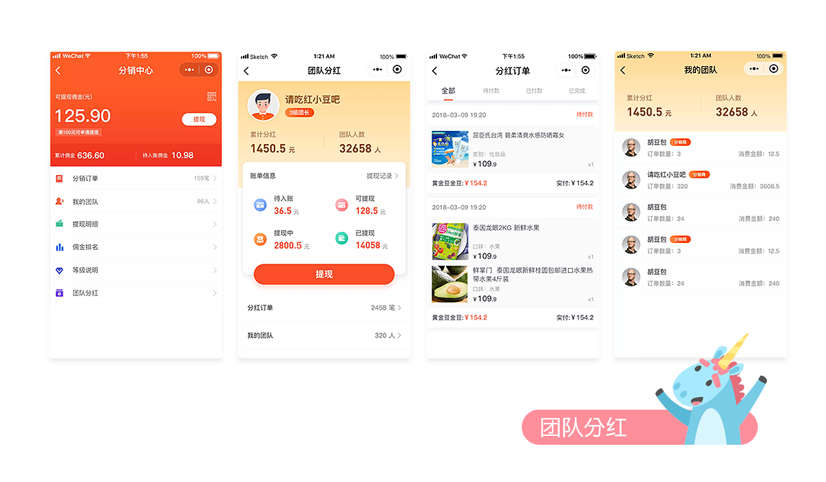 团队分红页面展示
