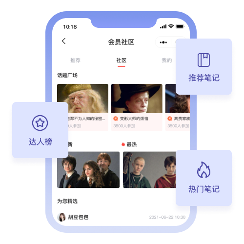 达人榜、推荐笔记、话题广场、热门笔记、精选笔记等多板块对会员进行内容种草