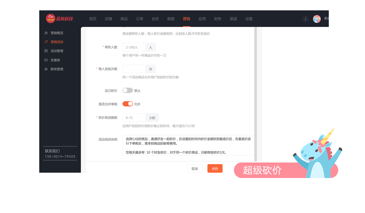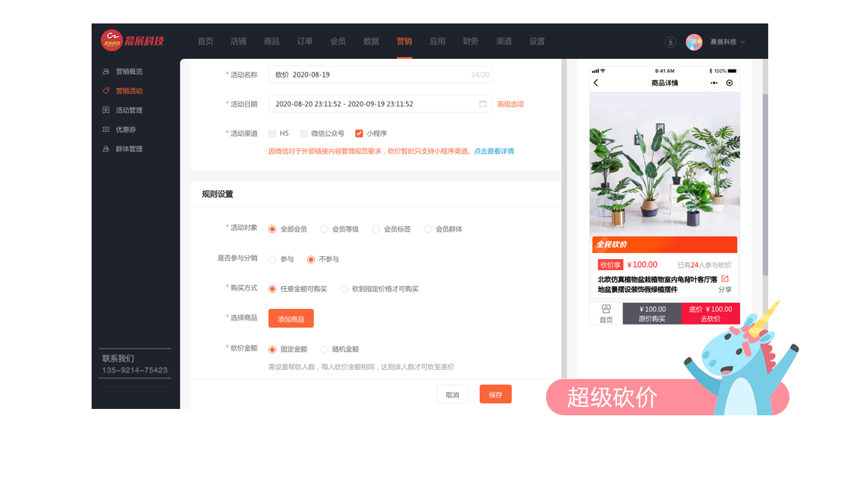 商城打折促销做活动,可自由设置购买方式,选择“任意金额可购买”或“砍到指定价格可购买”,商家在可控范围内降价促销,高效实现商品销售转化