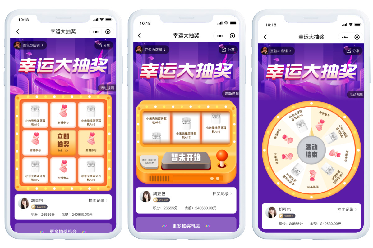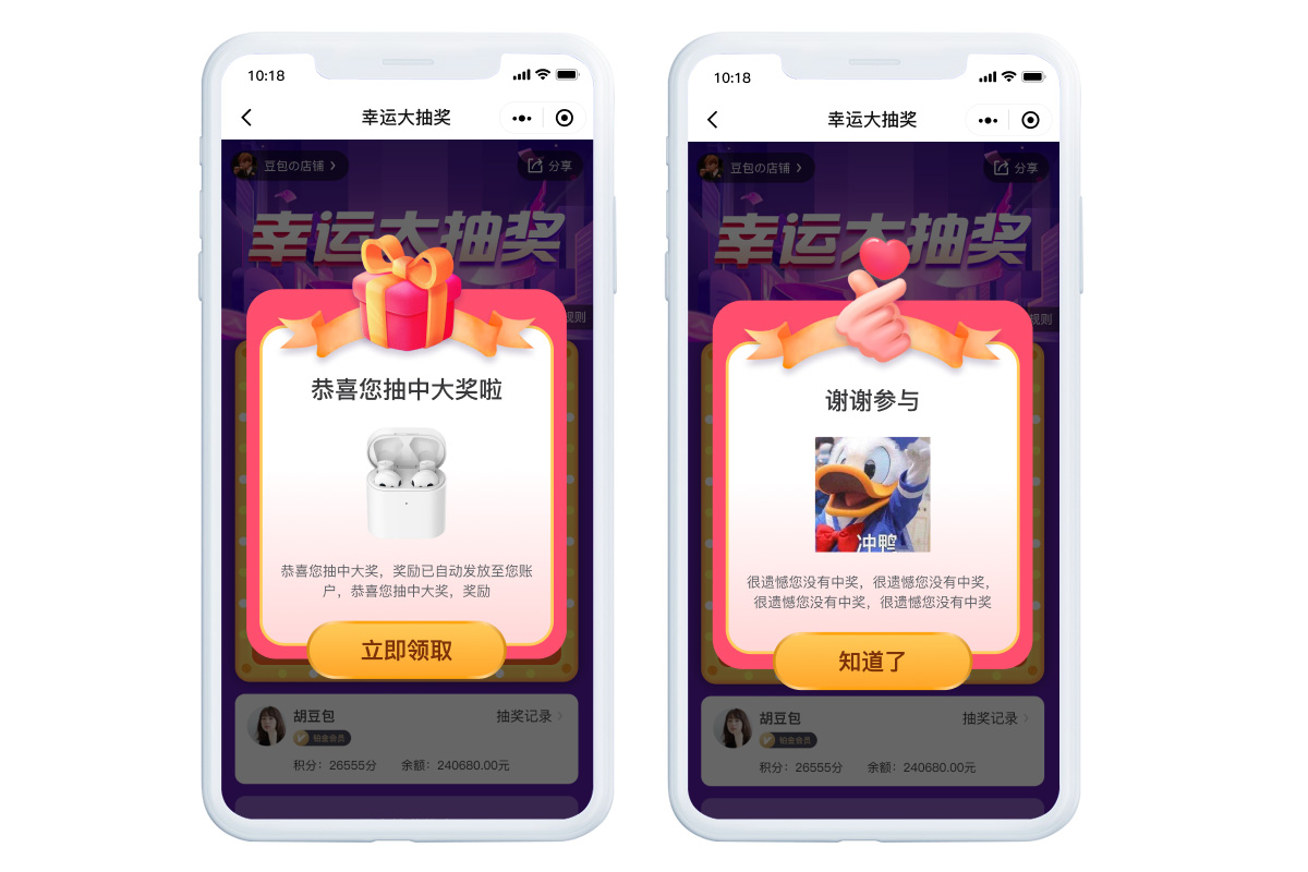 可自定义活动名称和页面背景,灵活配置活动奖项和中奖概率,让一切尽在掌握