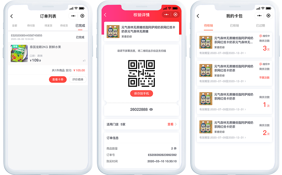 创建计次时商品,如健身卡、景区门票等,会员购买商品后生成核销卡,进行核销使用