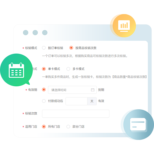 3.可设置商品核销适用门店,多门店支持跨店核销