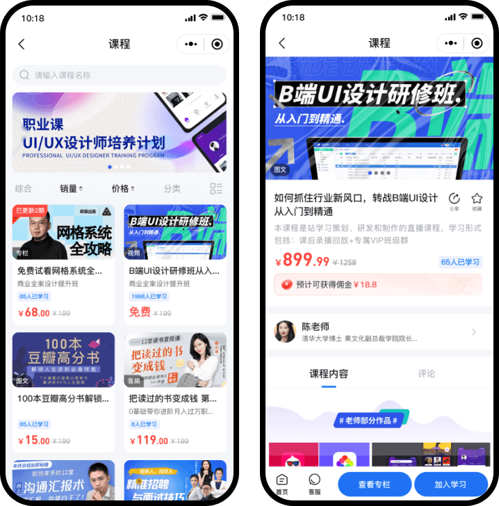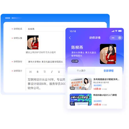 设立讲师专栏和讲师详情页面,树立讲师形象,便于用户付费学习同一讲师课程,增强用户粘性。