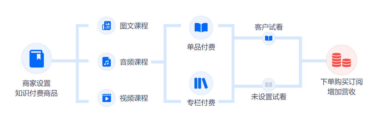 快速打造知识店铺,实现内容变现,满足用户碎片化学习需求,多维度沉淀粉丝,提升用户粘性