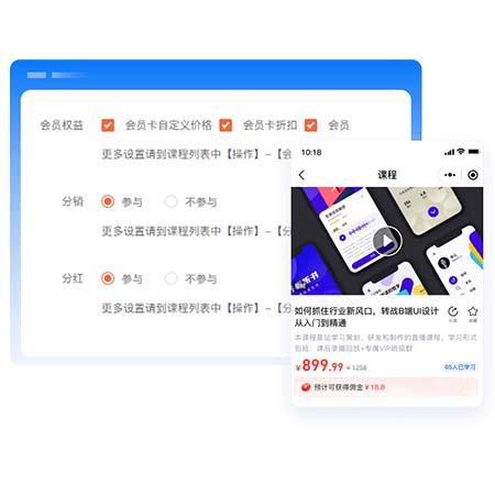 支持自定义课程海报样式,可通过用户分享传播将课程信息快速触达并吸引到更多用户。